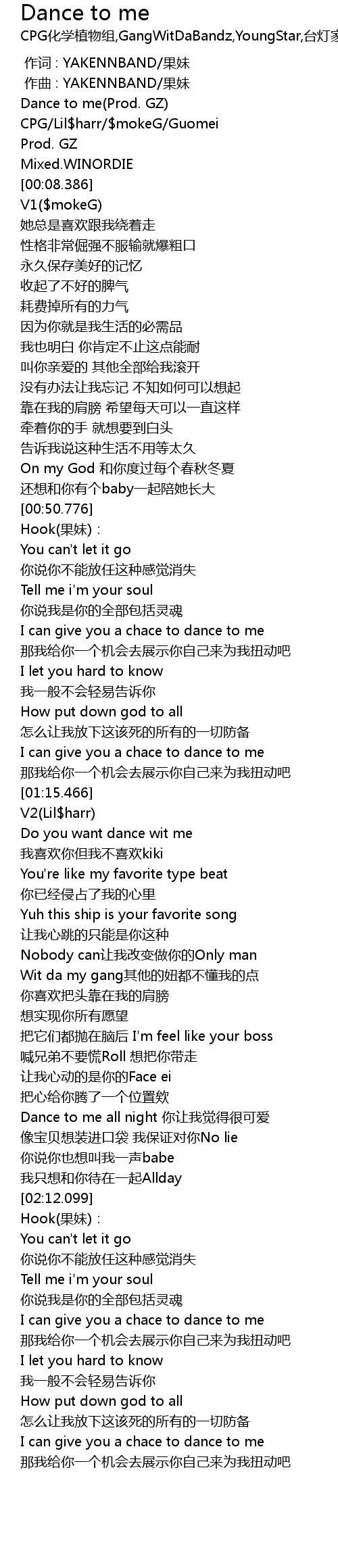 | [00:04.200] | Dance to me(Prod. GZ) |