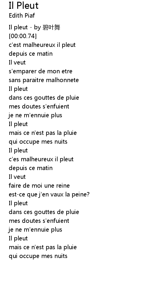 | [00:00.00] | Il pleut by bi ye wu |
