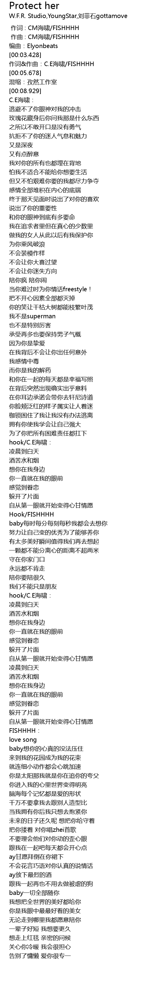 | [00:04.679] | 作词&作曲:C.E海啸/FISHHHH |