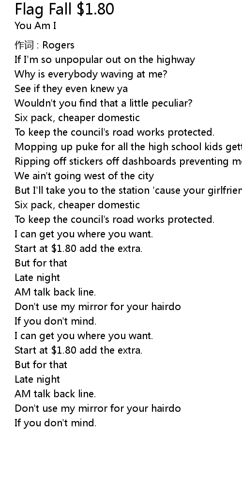 | Song | Flag Fall $1.80 |