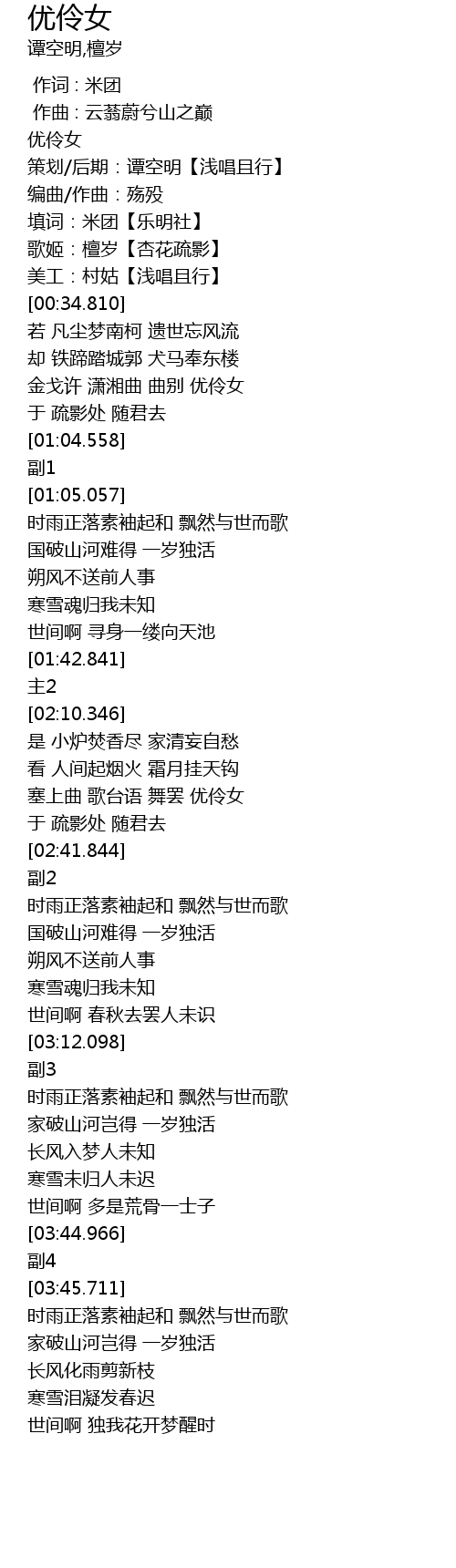 | [00:58.309] | 金戈许 潇湘曲 曲别 优伶女 |