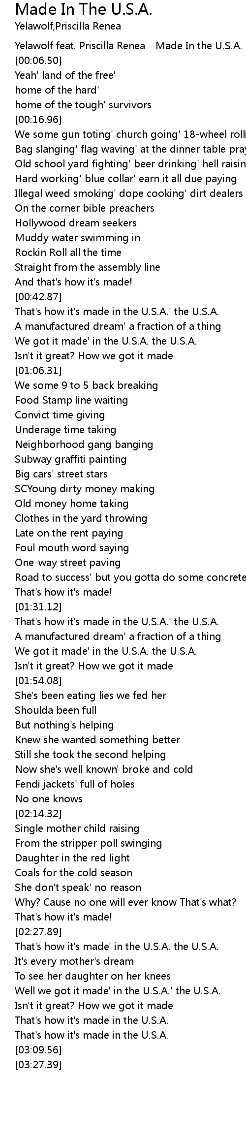 Yelawolf feat. Priscilla Renea - Made In the U.S.A. |