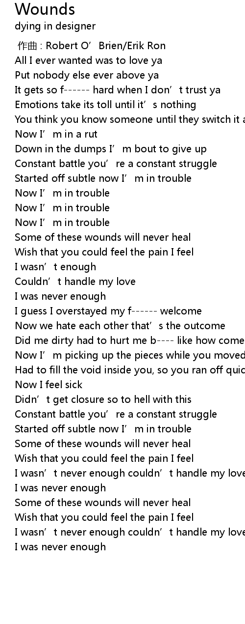 | [01:33.88] | Didn’t get closure so to hell with this |