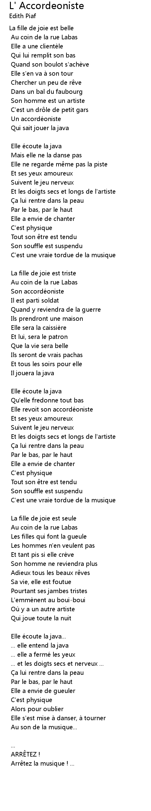 | Song | L' Accordeoniste |
