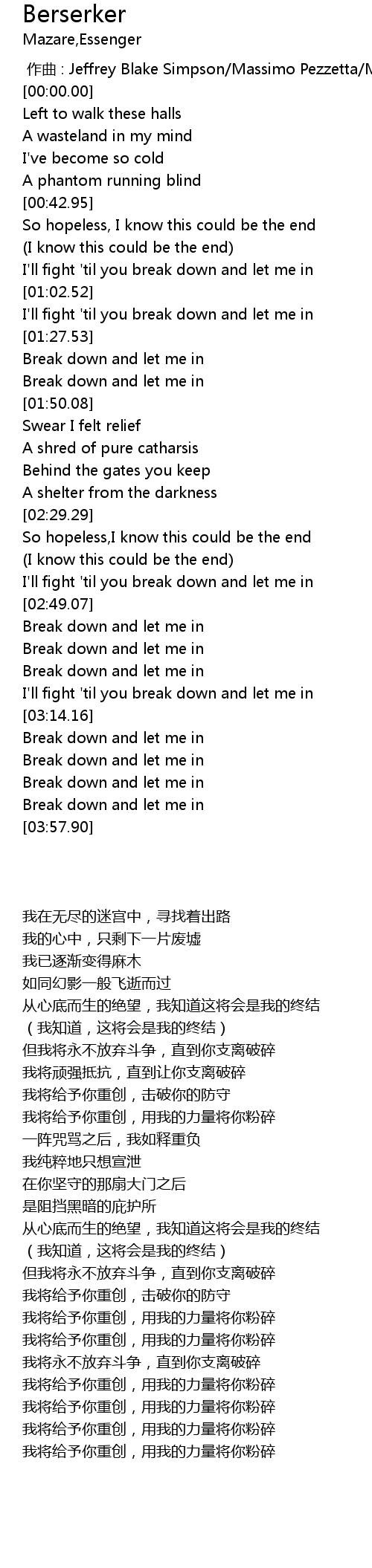 | [03:32.08] | Break down and let me in |