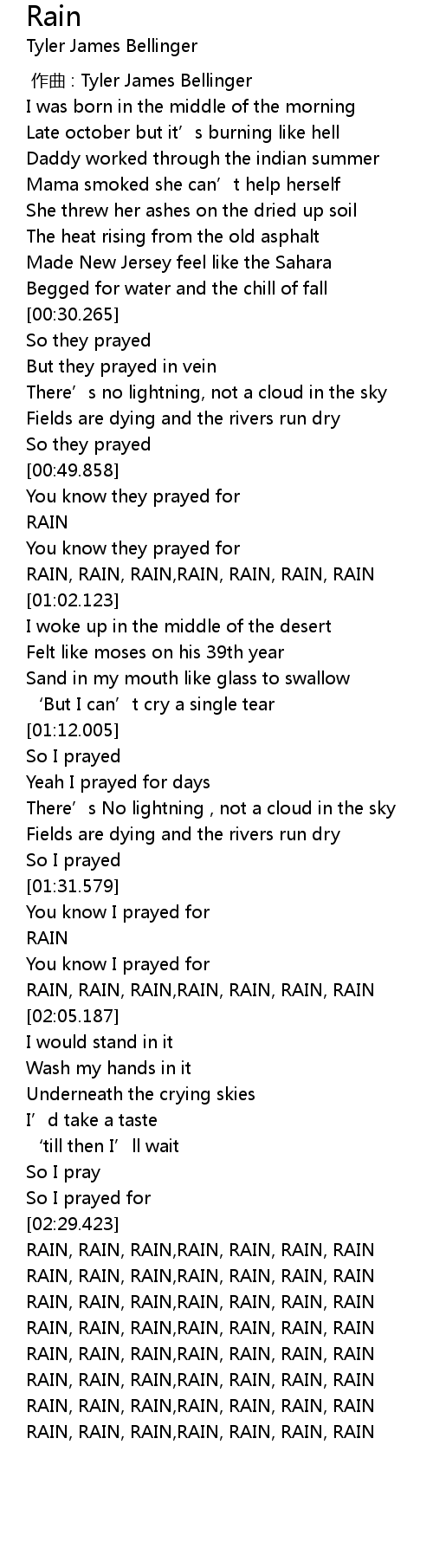 | [02:45.156] | RAIN, RAIN, RAIN,RAIN, RAIN, RAIN, RAIN |