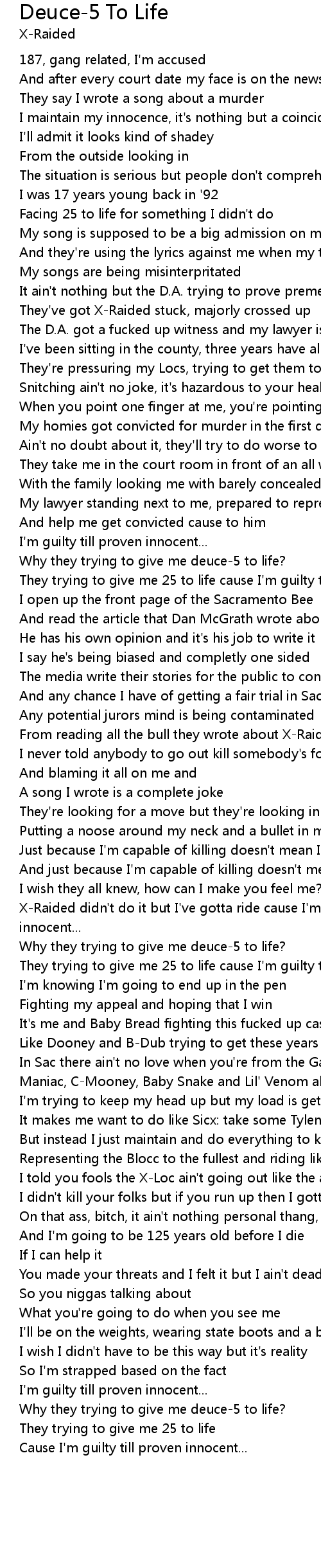 | They trying to give me 25 to life cause I'm guilty till proven innocent... | |