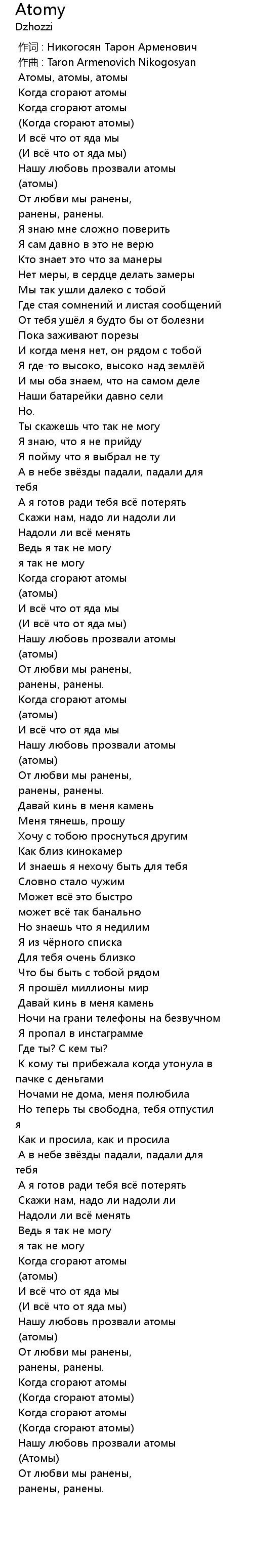 作词 : Никогосян Тарон Арменович |