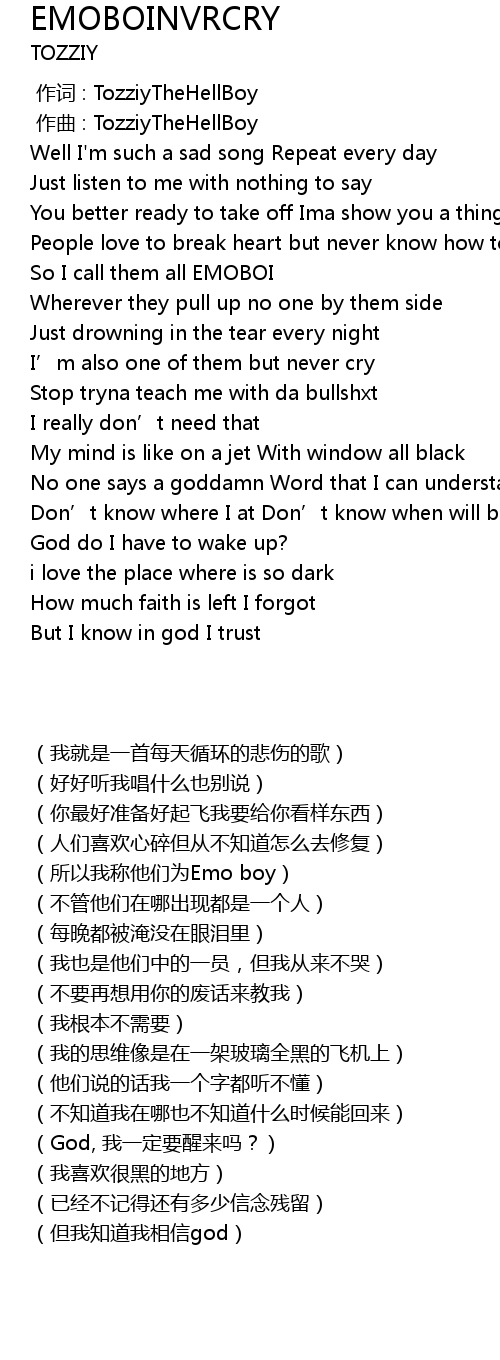 | [00:00.000] | 作词 : TozziyTheHellBoy |