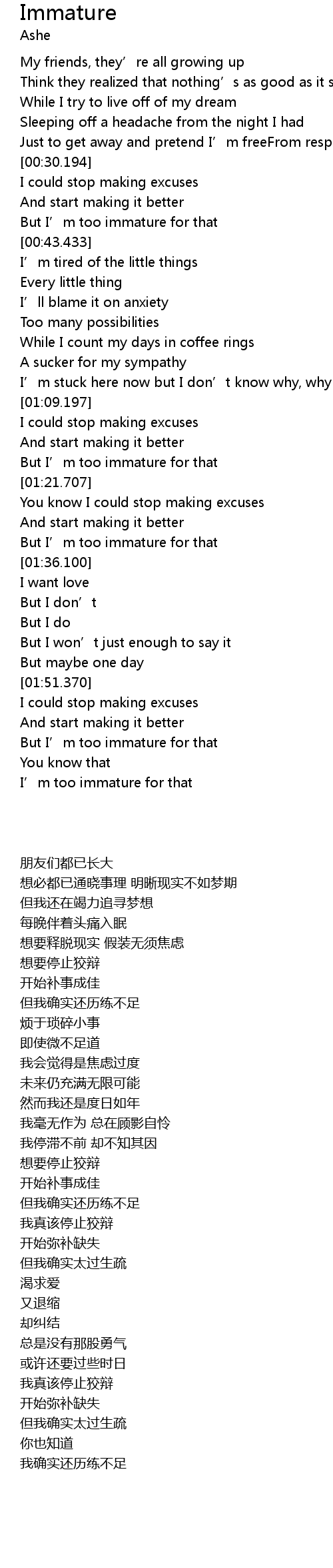 | [01:03.084] | I' m stuck here now but I don' t know why, why I try |