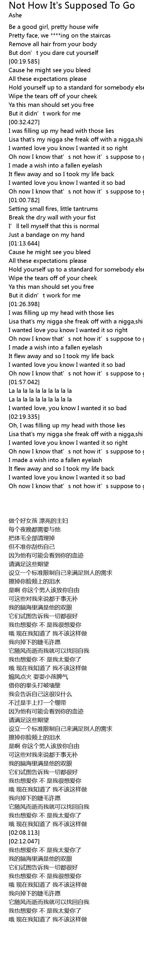 | [00:43.806] | Oh now I know that' s not how it' s suppose to go |
