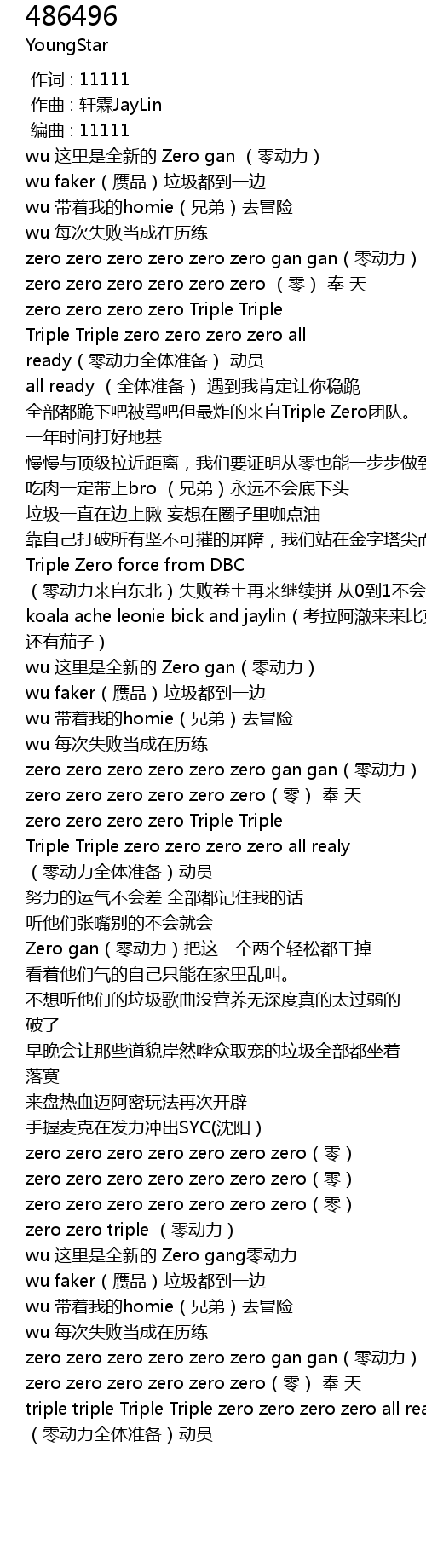 | [00:36.941] | zero zero zero zero zero zero gan gan(零动力) |