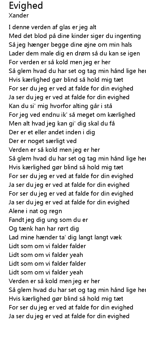 | [02:58.82] | For ser du jeg er ved at falde for din evighed |