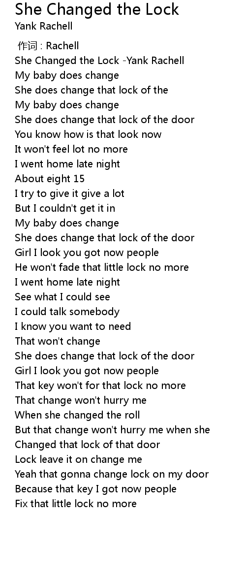 | [00:00.00] | She Changed the Lock Yank Rachell |
