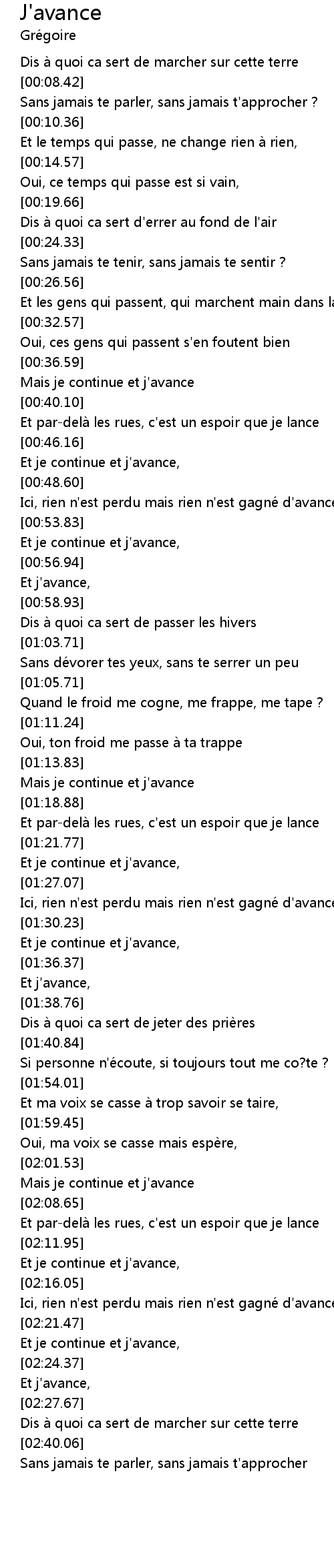 | [00:41.06] | Et par-delà les rues, c'est un espoir que je lance |