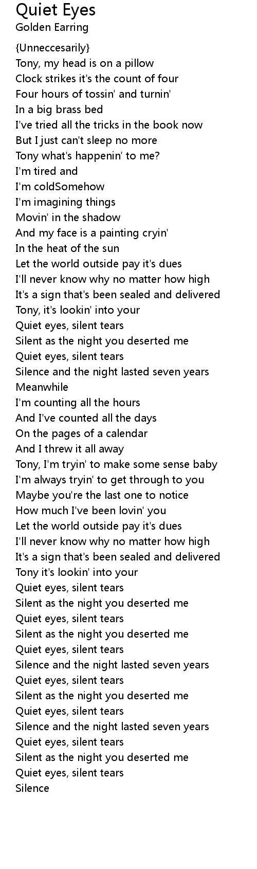 Quiet eyes, silent tears |