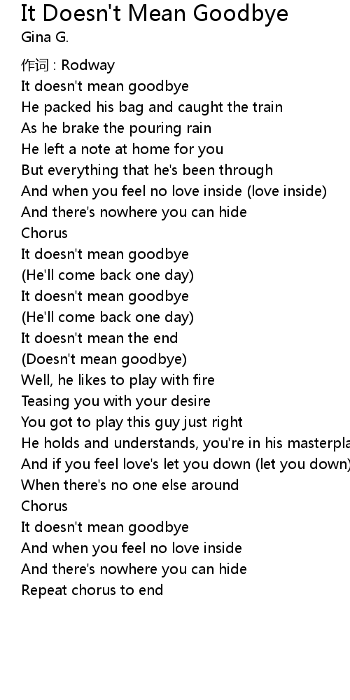 | Doesn' t mean goodbye | |