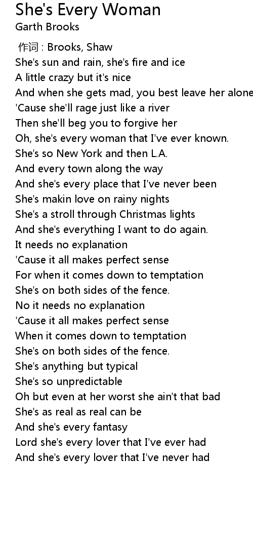 | [00:26.17] | Oh, she' s every woman that I' ve ever known. |