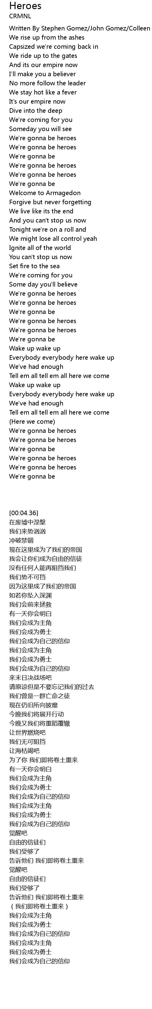 | [02:00.67] | We're gonna be heroes |