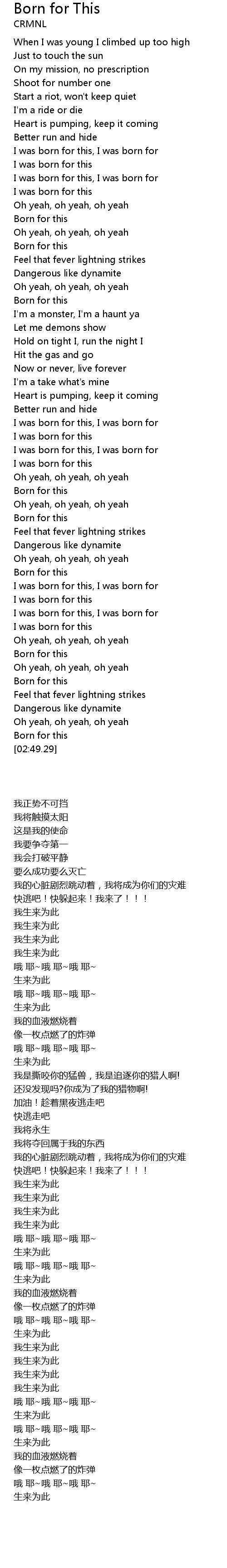 | [00:49.20] | Born for this |
