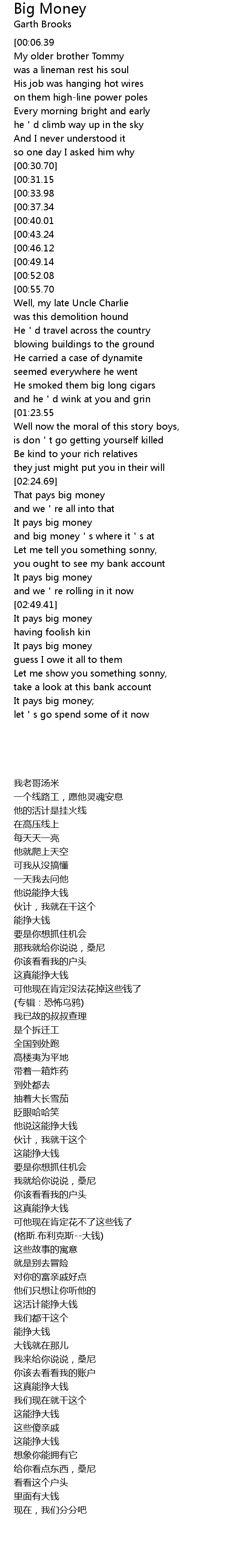 | [01:42.05][00:49.14] | It pays big money |