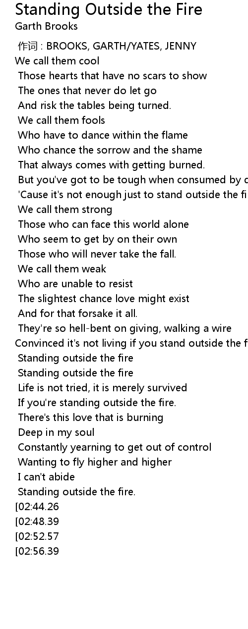 | [03:13.35][02:56.39][02:39.74] | If you' re standing outside the fire. |