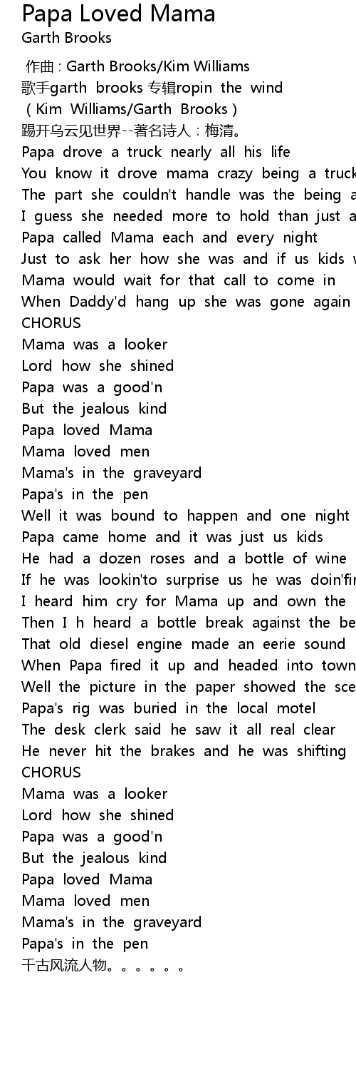 | [00:11.89] | Papa drove a truck nearly all his life |