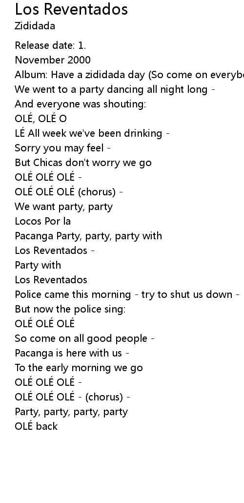 | Album: Have a zididada day So come on everybody, Locos Por la Pacanga | |