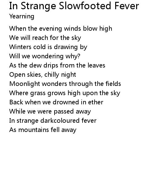 | Song | In Strange Slowfooted Fever |