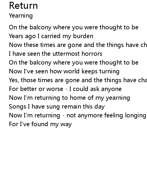 | Now I'm returning - not anymore feeling longing for you | |