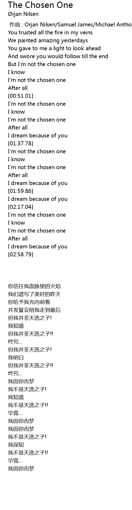 | [00:00.00] | zuò qǔ : Orjan Nilsen Samuel James Michael Anthony James |