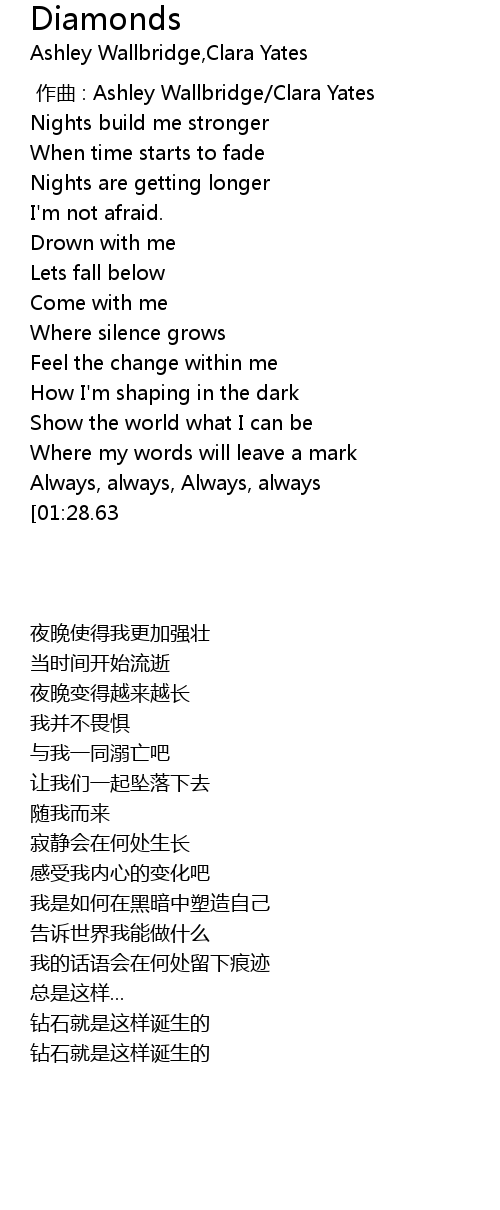 | [01:28.68][01:28.63] | That' s how diamonds are made |