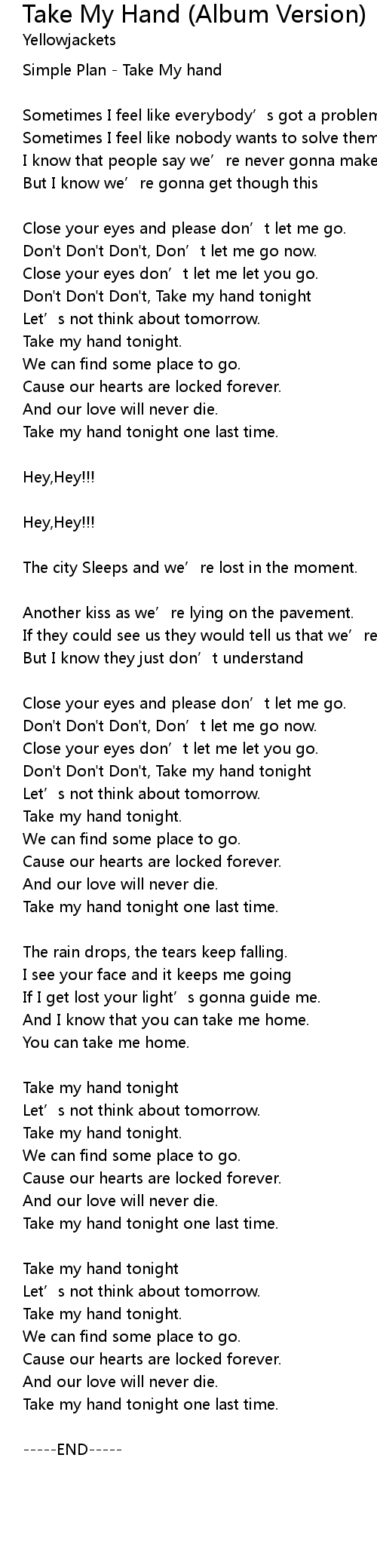 | Don' t Don' t Don' t, Take my hand tonight | |