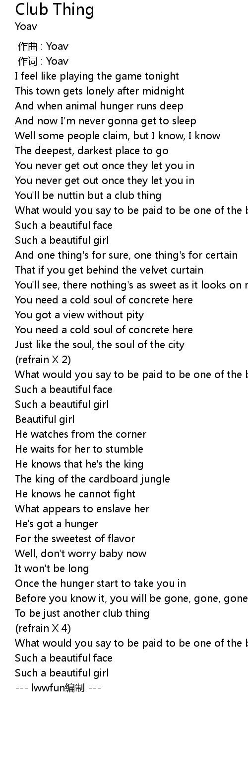 | [03:00.13] | To be just another club thing |