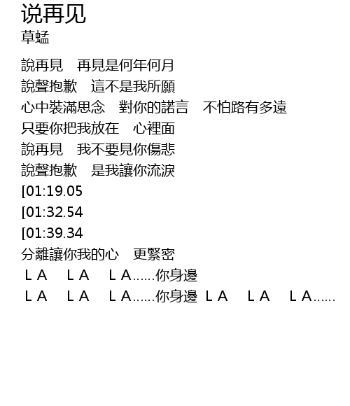 | [01:02.19] | 說再見 我不要見你傷悲 |