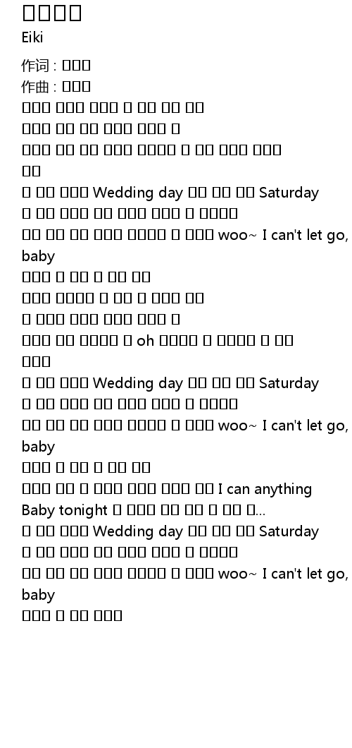 이 밤이 지나면 Wedding day 이런 슬픈 날은 Saturday |