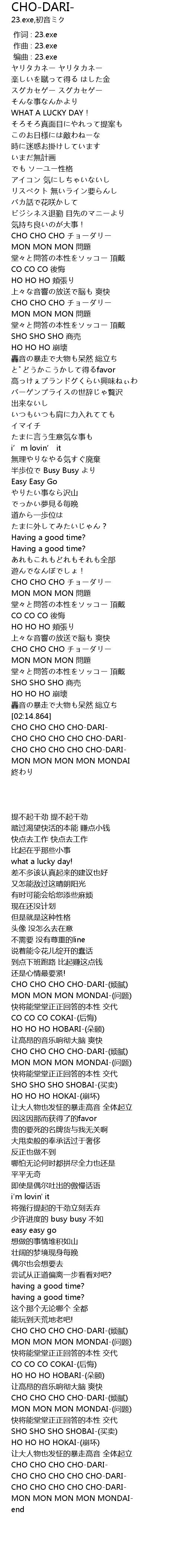 | [02:25.038] | CHO CHO CHO CHO CHODARI |