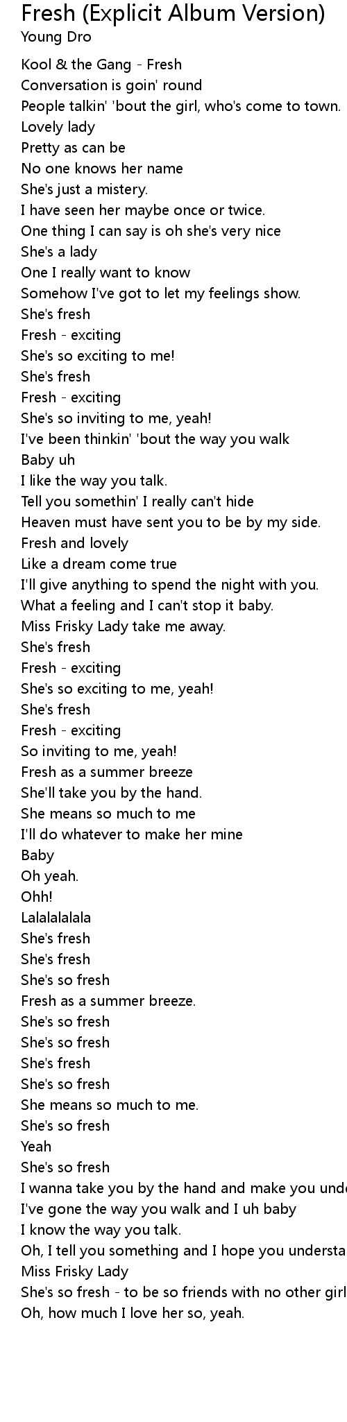 She's so fresh - to be so friends with no other girl than lady. |