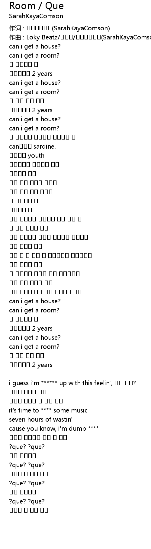 | Song | Room / Que |
