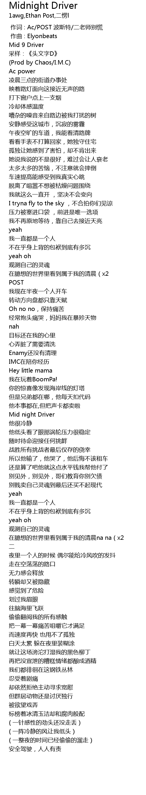 | [00:00.00] | 作词 : Ac/POST 波斯特/二老师别慌 |