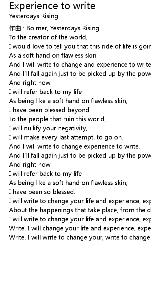 | I will write to change your life and experience, experience, | |