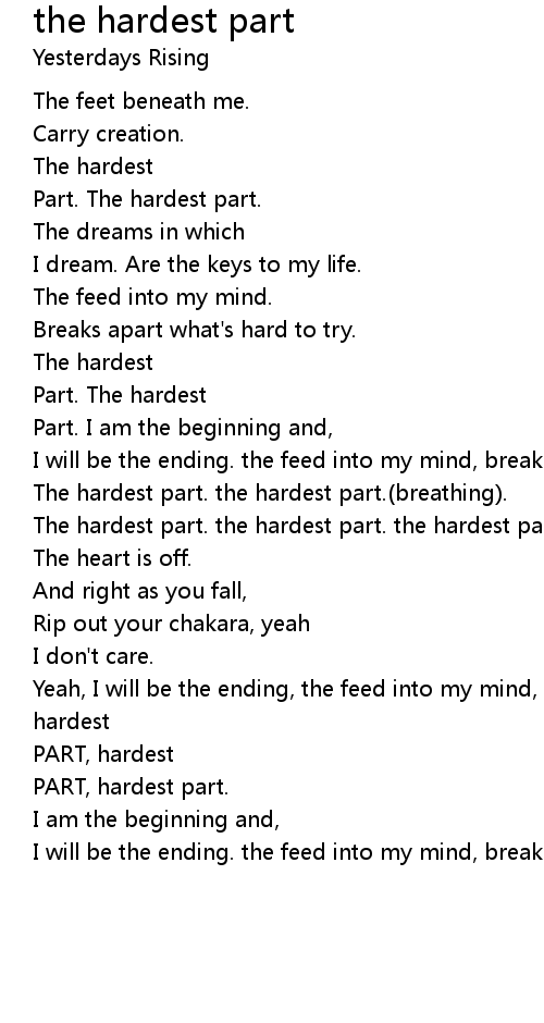 Yeah, I will be the ending, the feed into my mind, breaks apart what's hard. hardest |