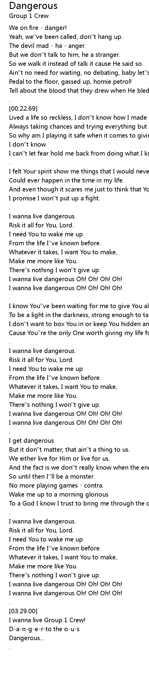 I wanna live dangerous Oh! Oh! Oh! Oh! |