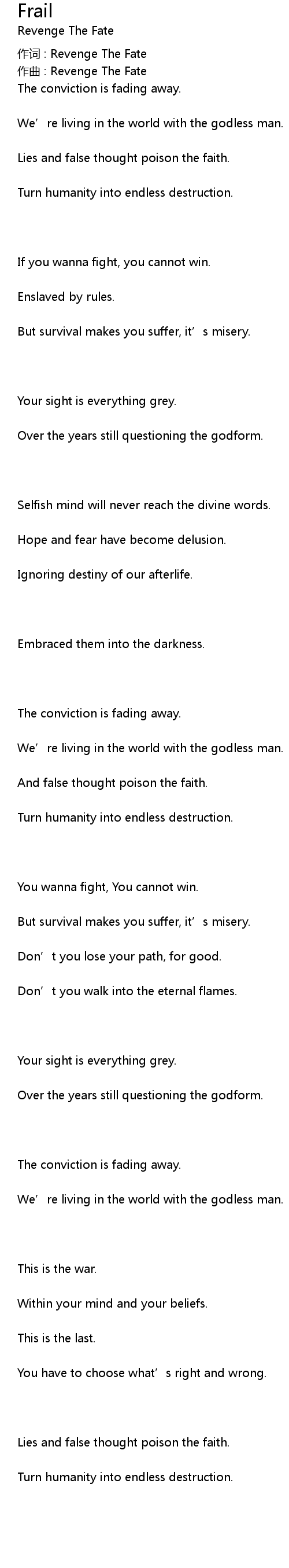 | 作词 : Revenge The Fate | |
