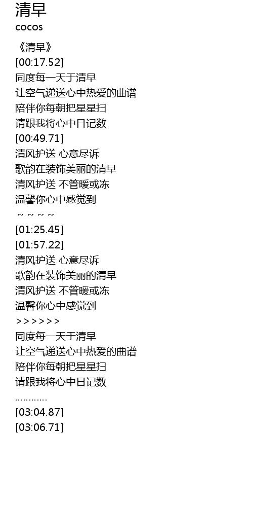 | [00:00.00] | 《清早》 |