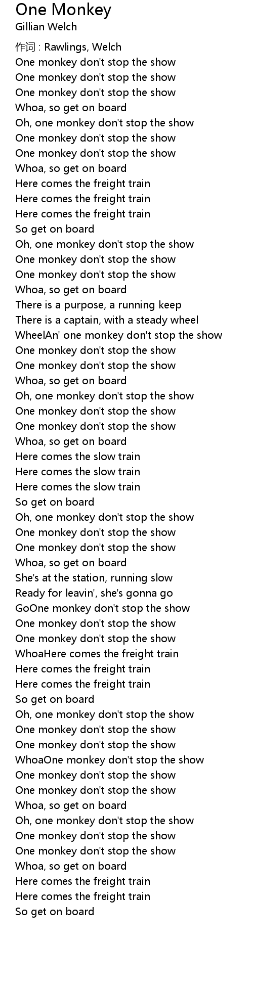 | WhoaOne monkey don' t stop the show | |