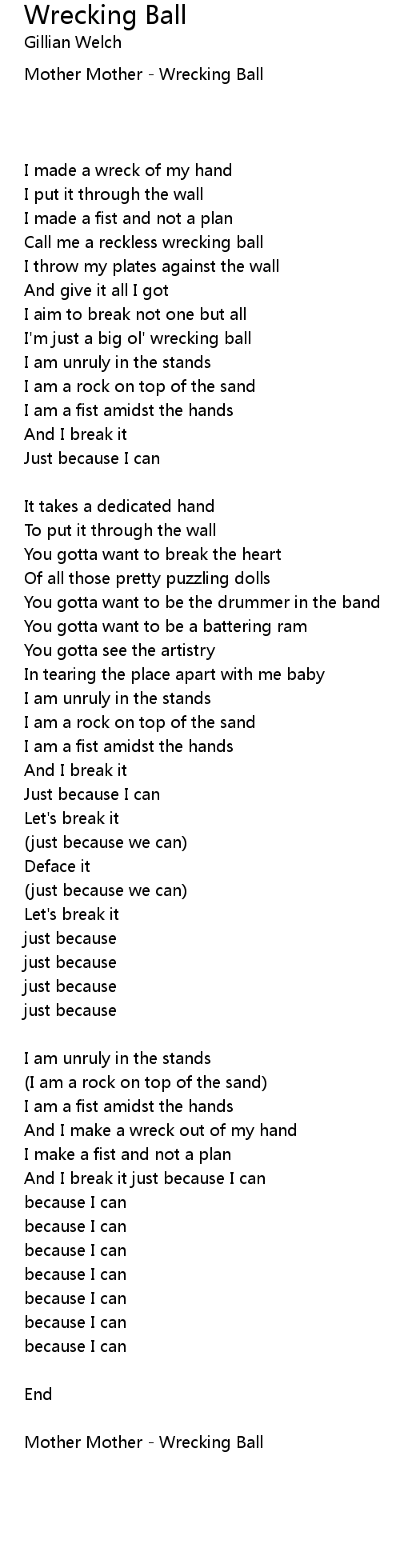 Call me a reckless wrecking ball |