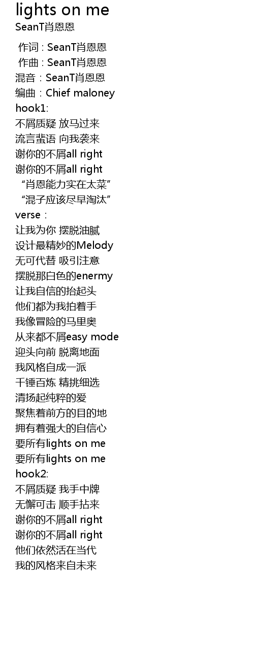 | [00:40.010] | 要所有lights on me |