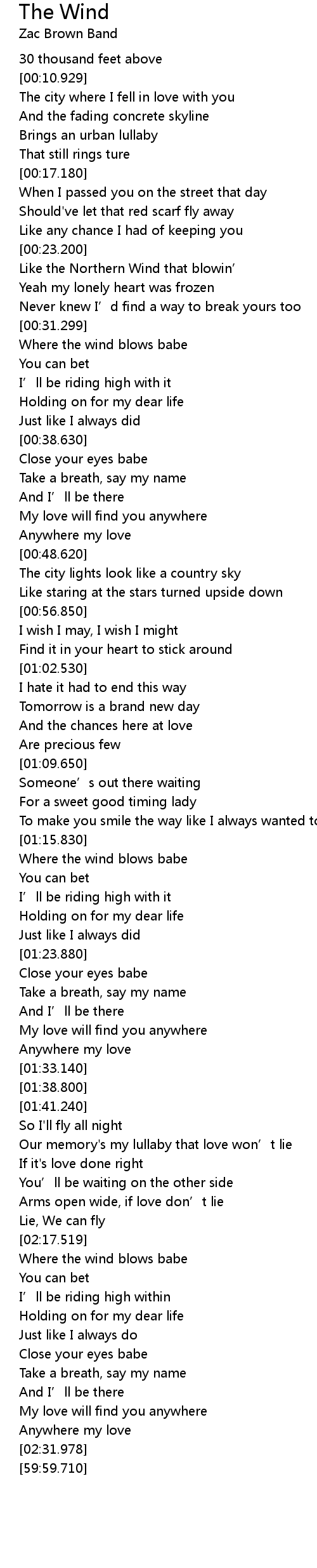 | [01:17.0] | Where the wind blows babe |