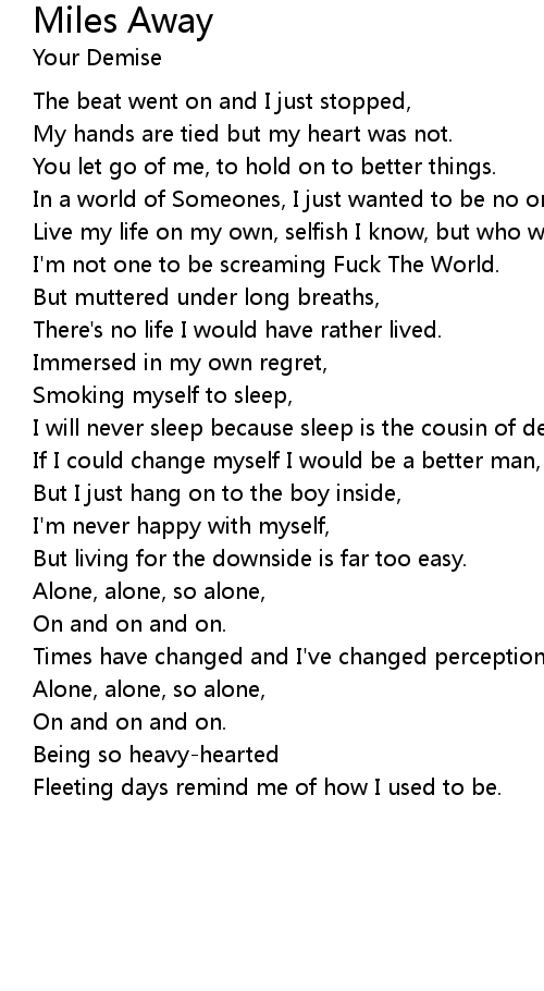 Live my life on my own, selfish I know, but who would even know? |